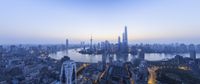 A stunning aerial view of Shanghai's futuristic cityscape at night, showcasing the modern architecture, high-rise buildings, and vibrant metropolitan area in China's largest metropolis.