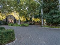 An elevated top-down shot showcasing the historic architecture, open spaces, and greenery of Sedona, Arizona, USA, with clear skies and hard shadows.