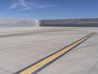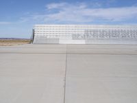The USA coastline reveals a composite of architecture, landscape, and natural environment in this aerial view of California, Nevada, Utah, and the surrounding areas. The view includes a beach, desert, ocean, road surface, metal wall, and airport runway, with contrails, cloud, and blue sky in the clear background.