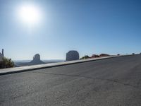 In the heart of the American Southwest, the open roads of Arizona and Utah lead to the iconic Monument Valley. Under the clear skies and shining sun, the asphalt roads cut through the sandy landscape, offering profiles of nature at its most majestic. The sunny weather highlights the vast open spaces, creating a picture-perfect setting for a road trip adventure.