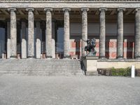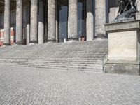 The Altes Museum in Berlin, Germany, is a remarkable example of classic and modern architecture. From the cobble stone pathways to the ancient Roman columns and the grandeur of the palace, it is a tourist attraction and a reminder of the city's historic architecture. The clear sky, the open space, and the straight down the road of the city's urban design, all come together to create an unforgettable experience of urban life and ancient history.