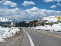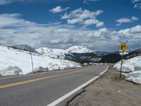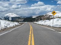 In the heart of Colorado's stunning landscape, Aspen's snowy mountains and asphalt roads create a picturesque winter scene. Clouds float above the snow-covered peaks, offering a serene backdrop to the road leading straight down to the summit. Nature's beauty shines through on this day, as one-quarter of the USA's winter wonderland unfolds before you.