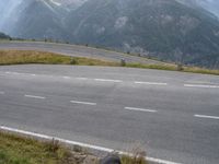 An aerial view of the rural Austrian landscape, showing a winding road with switchbacks, curves, and an Armco guardrail in the foreground, with mountains and open space in the background.