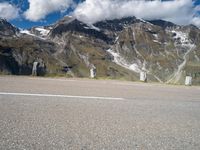 a mountain range is shown near an empty road in the background and with mountains in the distance