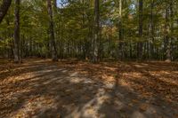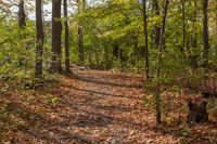 A scenic road surrounded by deciduous trees and lush vegetation in Ontario, Canada during the autumn season.