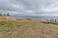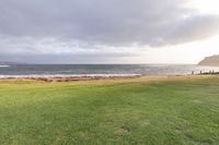 A stunning view of an azure lake surrounded by highland landscape with lush vegetation and clear blue skies.
