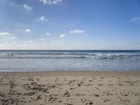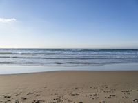 The peaceful open space of the natural environment in Portugal is illuminated by the sun, with a clear sky, a tree-dotted coastline and a horizon of azure water and white cumulus clouds in the background. Wave patterns create a dynamic surface and a fluid atmosphere.