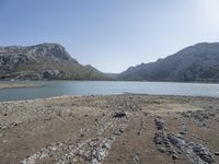 Aerial view of the Balearic Islands in Spain with its coastal roads, hillside terrain, and mountain landforms illuminated by the break of day. The clear sky reveals a calm natural environment with a glacial fjord, reservoir, and open grass plains.