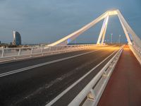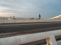 As the sun sets over Barcelona, the city comes alive with the glow of artificial lights. Modern architecture and sleek bridges create a captivating cityscape. The streets are lined with streetlights, casting a soft glow on the asphalt roads. Clouds float across the darkening sky, creating a dramatic backdrop. From the break of day to the night, Barcelona's urban design and vibrant city life offer endless opportunities for exploration and discovery.