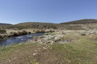 A stunning view of a mountain range with clear blue skies and lush vegetation