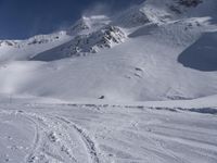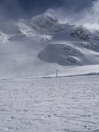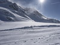 A tourist overlooks a spectacular winter view of the French Alps, with snow-capped peaks, glacial ice caps, and arêtes in the distance. The clear sky and sunshine make for an atmosphere of peacefulness and wilderness on this elevated landscape.