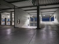 The city of Berlin is illuminated at night, showcasing its modern urban design, concrete streets, and open spaces, including a parking deck and garage in the city center of Germany in Europe.