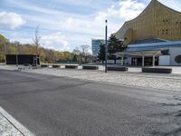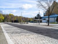 The striking architectural skyline of Berlin, Germany is illuminated by the early morning light, with modern buildings and cobblestone streets juxtaposed against the lake and urban vegetation.