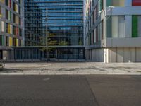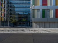 Experience city life in Berlin, Germany, where modern architecture meets urban design. The business district features sleek office buildings casting hard shadows on the asphalt roads. With clear skies above, the city profile stands tall, showcasing Europe's vibrant urban scene. Discover Berlin's dynamic atmosphere, where bustling roads and contemporary design define the city's essence.