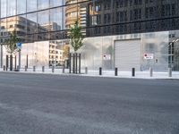 A cityscape of Berlin, Germany featuring modern architecture, high-rises, office buildings, and a mix of urban and residential areas. The clear sky offers a glimpse of a composite material facade, metal walls, symmetrical windows, and a grey asphalt road surface.