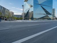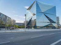 The sun visible at the break of day casts a warm glow on the modern architecture of the financial district in Berlin, Germany, showing the vibrant city life of this European urban center.