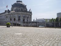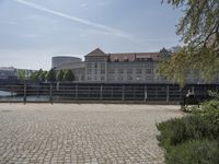 A beautiful day in Berlin, Germany offers a view of the traditional architecture along the waterfront, with houses and buildings reflecting upon the coastal city's canals and rivers. From cobblestone roads to urban design, this cityscape is a perfect example of what urban life in Europe has to offer - from the Bode Museum to the Brutalist architecture, it's a tourist attraction like no other.