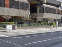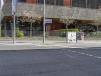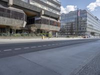A view of a modern cityscape in Berlin, Germany. On a clear day, the yellow facades of the buildings, the mixed-use properties, and the public infrastructure are visible, creating a unique urban design. The residential area, business district, and metropolitan area give a glimpse of city life, with a road, road surface, crosswalk, curb, lane, tree, and fence in the foreground.