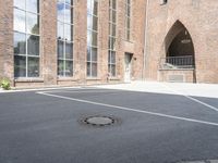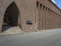 Berlin, Germany is home to a diverse range of modern architecture, residential and business areas, urban design, and infrastructure. From city life, to museum, office buildings, and warehouses, the German capital offers a variety of urban landscapes that are sure to impress. This photo captures a brick wall, a residential house, a courtyard, a business district, and a tree in the foreground, with the open space of the Hinterhof, the curb of the road surface, and the circle of the arch all creating an interesting composition.