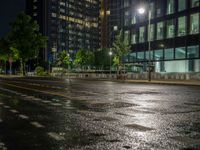 Experience the vibrant city life of Berlin at night. The city's modern architecture is illuminated by the glow of street lights, creating a captivating scene of light streaks and motion blur. The business district comes alive with the hustle and bustle of activity, as office buildings stand tall against the dark sky. The wet streets reflect the artificial light, adding a touch of magic to the urban landscape. Explore the city's urban design and immerse yourself in the energy of Berlin at night.