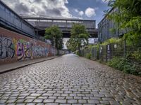 Immerse yourself in Berlin's vibrant city life and European charm, where graffiti walls and street art adorn industrial buildings and underpasses. Cobblestone roads lead to art districts filled with rugged warehouses and storerooms. The city's urban design showcases a blend of manufacturing depots and graffiti-covered walls, creating a unique urban landscape. Explore the one-quarter with its cloud-covered skies and wet streets, where vegetation thrives against the backdrop of graffiti-clad walls.