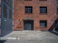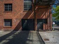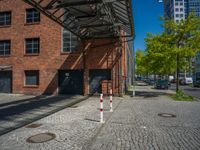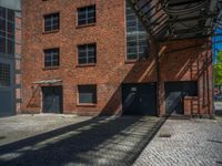 Experience the essence of Berlin's city life in Europe, Germany. Classic architecture and urban design create a picturesque scene against the clear sky. Cobblestone streets lead to storerooms and warehouses, blending with modern profiles and factory buildings. Shadows play on the surfaces, adding depth to the urban landscape. Explore the city's open spaces and vegetation, where storages and depots stand as a testament to its industrial history.