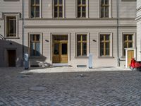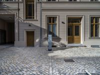 In the heart of Berlin, Europe, classic architecture meets modern charging stations in residential areas. Cobblestone streets lead to Hinterhofs and courtyards, casting shadows on traditional houses. Urban design blends with open spaces and residential areas, featuring electric recharging units. The city comes to life during the day, with hard shadows adding depth to the urban landscape.