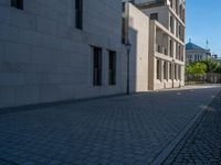 Berlin's residential areas showcase a mix of modern and classic architecture under the clear European sky. The city's urban design features straight roads and charming alleyways, with hard shadows casting a dramatic effect. Pavers line the streets, creating a unique urban landscape. As the day progresses, shadows play on the city's surfaces, adding depth and character to the residential quarters. Experience the essence of European city life in Berlin's urban environment.