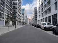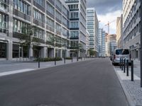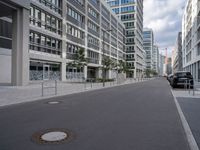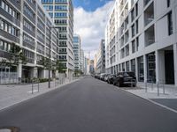 In Berlin, Europe's vibrant city, modern architecture defines the business district. Sleek office buildings line the asphalt roads, embodying contemporary urban design. This German metropolis showcases city life with clouds drifting over its bustling streets, a testament to its dynamic business environment and architectural innovation.