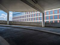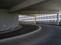 Immerse yourself in the vibrant city life of Berlin, where modern architecture and urban design shape the European cityscape. Roads curve through the city, casting shadows under the clear European skies. The blend of classic and contemporary architecture creates a unique atmosphere, with asphalt roads leading to parking garages and decks. Explore the urban landscape where shadows play with the city's curves, offering a glimpse of Germany's architectural prowess.