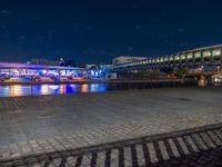 In Berlin, the interplay of artificial and neon lights illuminates the modern architecture along the river and canals. The cityscape offers a captivating view, with cobblestone paths and urban designs reflecting off water surfaces. As night falls, the clear sky enhances the vibrant city life, creating a unique European experience. Open spaces and pavers contribute to the city's architectural profile, making Berlin a standout in Germany's urban landscape.