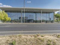 The city of Berlin, Germany is showcased here with its modern architecture, asphalt road surface, and urban design. Buildings, public spaces, street lights, and vegetation are also highlighted, as well as a motor vehicle and tire in the foreground. This scene is typical of a day in Europe with its clear sky and tar composite material.