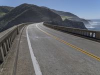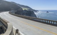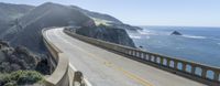 A view of the iconic Bixby Creek Bridge along California's Pacific Coast Highway, with the Armco barrier railing standing guard over the aqueduct-like formation of the canyon and the dramatic cliffs of Big Sur in the background.