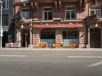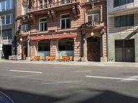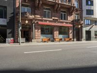 A cafe and restaurant in a residential area of Berlin, Germany, a bustling European city with classic architecture and mixed-use properties. Tourists can eat out in the downtown neighborhood and explore the urban lane and road surface.