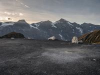 The peaceful break of day in Austria, Europe offers a stunning overview of nature, from the gravel and sand surfaces to the open space and clear sky. The mountain overlook provides a view of the asphalt and dirt paths below.