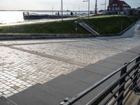 The beautiful city of Bremen, Germany is a harmonious mix of modern architecture, nature, and open spaces. The coastal city is full of life and activity, with its harbor, jetty, lake, and beach providing a picturesque backdrop. The clear sky and sunlight add tints and shades to the panoramic view of the city's infrastructure, urban design, and water resources. The blend of trees, asphalt, cobblestone, and grass create a stunning contrast between the busy city and peaceful coastal atmosphere.