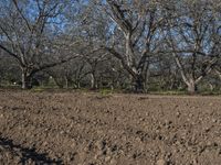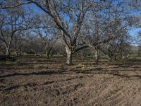 A beautiful day in the rural countryside of California, USA. The image showcases a vast field with lush green grass, blooming flowers, and tall trees. The dirt road leads the way through the scenic landscape, surrounded by woody plants and vegetation. The clear blue sky adds to the natural beauty of this agricultural area.