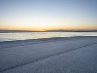 A calm morning at Lisbon's harbor in Portugal reveals a beautiful landscape of the open space along the coastline. The red sky at the break of day illuminates the lake, pier, and the jetty, while the clear sky reveals the azure ocean and a lighthouse in the background. The sun's light casts a freezing atmosphere over the coastal roads, asphalt, and the plain. This peaceful scene is a reminder of the importance of our natural water resources and atmosphere.