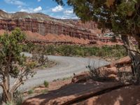 In the heart of Utah's Capitol Reef National Park, a scenic road winds through the stunning landscape. Surrounded by majestic cliffs and vibrant red rocks, this off-road track offers a thrilling adventure for nature enthusiasts. The rugged terrain is a mix of dirt, gravel, and sand, providing a unique and challenging experience. Whether you're exploring on foot or in a vehicle, the captivating views and serene atmosphere make this road a must-visit destination in the USA.
