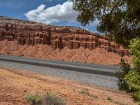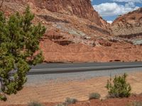 Travel along Highway 12 in Capitol Reef, Utah and experience the stunning beauty of the American landscape. The road stretches into the horizon, surrounded by vast expanses of nature. As you drive, admire the profile of the mountains against the sky, with fluffy clouds adding a touch of drama to the scene. The asphalt road winds through the countryside, offering a tranquil journey through this picturesque part of the USA.