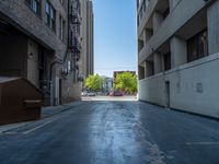 This stock photo captures the vibrant city life of Salt Lake City, Utah, USA. The image showcases a straight road surrounded by tall buildings, with hard shadows cast by the urban architecture. The asphalt road leads to a parking deck in the distance, creating an urban design aesthetic. The alley-way and city atmosphere add to the overall charm of this bustling location during the day.