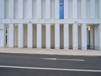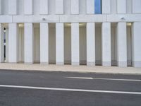 An office building stands tall in the metropolitan area of Lisbon, Portugal, with asphalt driveway and grey facade. The modern architecture features symmetrical window columns, tints and shades, and a wood profile. A composite material of urban design and city life, the parking lot line gives the building a unique look.