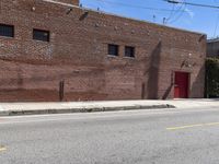 A snapshot of the city of Los Angeles, USA, featuring classic architecture, modern design, and street art. Automobiles, vegetation, and signage are visible in the beige and brick exterior of a residential area, while a chain link fence and overhead power line cross the street.