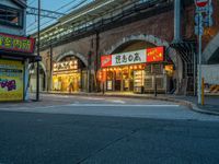 This vibrant stock photo captures the bustling city life of Tokyo, Japan. The road is lined with various shops and storefronts, illuminated by artificial light as the break of day approaches. The clear sky adds a touch of serenity to the urban design, while street lights and pavers pave the way for pedestrians. Experience the energetic atmosphere of this city as you explore the diverse restaurant and shopping options available.