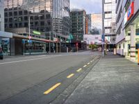 A vibrant cityscape in Wellington, New Zealand, showcasing modern architecture and bustling urban life with cafes, shops, and business districts.