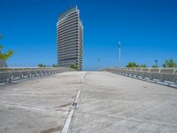 This stock photo showcases the vibrant city life in Zaragoza, Spain. The image captures the modern architecture and urban design of the city, with clear blue skies overhead. The concrete surface of the road leads straight down, providing a unique perspective of the urban landscape. Zaragoza, a city in Europe, is known for its rich history and architectural beauty. This photo perfectly encapsulates the dynamic energy and beauty of this Spanish city.