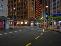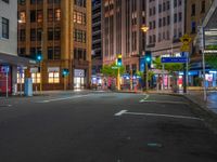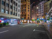 Experience the vibrant city life of modern architecture under the artificial light of the night sky. Asphalt roads stretch in straight lines, guiding you through the urban landscape. As you walk one quarter down the road, the dark surroundings come alive with city lights. The blend of urban design and contemporary structures creates a unique atmosphere in this bustling city at night.