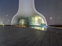 A view of the vibrant cityscape of Taichung, Republic of China. The modern architecture and shop fronts are illuminated by the artificial light of the night, surrounded by a clear sky and a grass surface below.