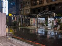 The vibrant nightlife of Taipei City, Taiwan is seen through the neon lights of the city's urban design and the wet asphalt of its roads in the Republic of China.