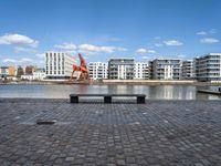 A vibrant city skyline with a modern high-rise building, harbor pier, and residential area, illuminated against the clear sky at dawn. Roads, asphalt, cobblestone, and a lake can be seen with a vehicle, street light, and landmark house in the background. This view of Bremen captures the beauty of its urban design, architecture, and coastal resources.